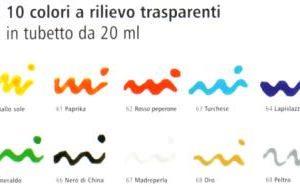 Vitrea 160 - 10 colori a rilievo trasparenti in tubetti da 20 ml con beccuccio dosatore.